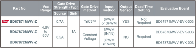 中国上海,2025年10月23日——全球知名半导体制造商ROHM(总部位于日本京都市)今日宣布,推出适用于中等耐压系统(12V~48V系统)的采用“TriC3TM”技术的三相无刷直流电机驱动器IC“BD67871MWV-Z”。通过配备ROHM自有的驱动逻辑,该电机驱动器IC成功地在降低FET发热量的同时实现了低EMI*1特性,而这两项之间存在此消彼长的关系,通常很难同时兼顾。