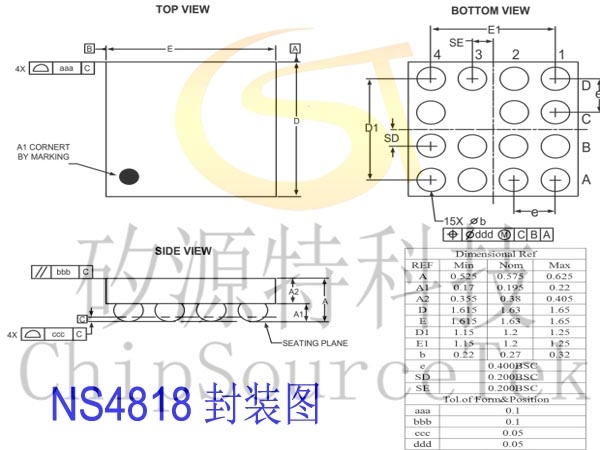NS4818采用WLCSP封装(1.63mm*1.63mm)