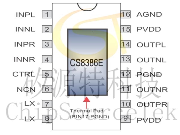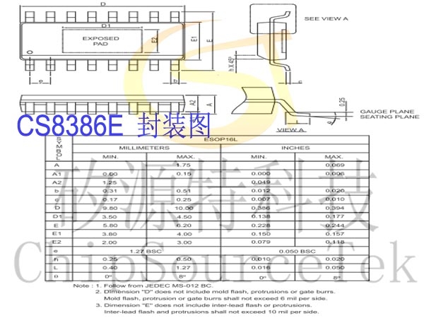 CS8386E提供了纤小的的ESOP16L封装形式供客户选择,其额定的工作温度范围为-40℃至85℃.