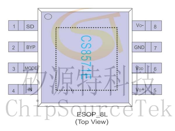CS8571E提供了带散热片的ESOP8封装形式供客户选择,其额定的工作温度范围为-40℃至85℃。