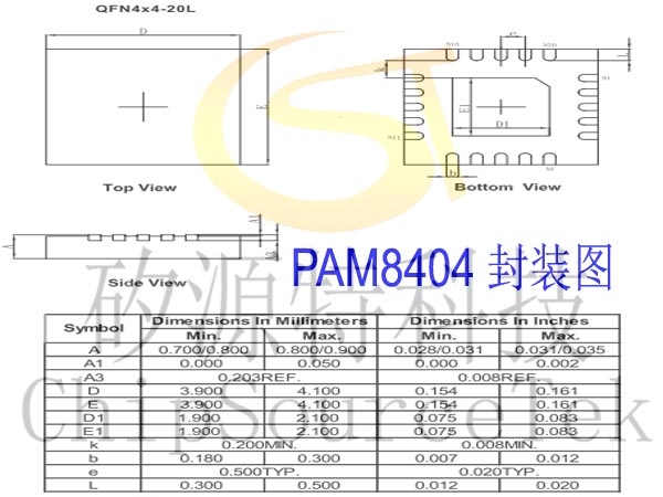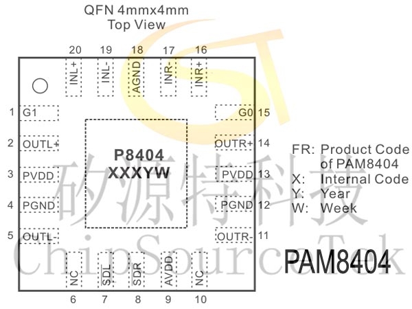 PAM8404 is available in QFN 4mmx4mm and WCSP 2mmx2mm packages.