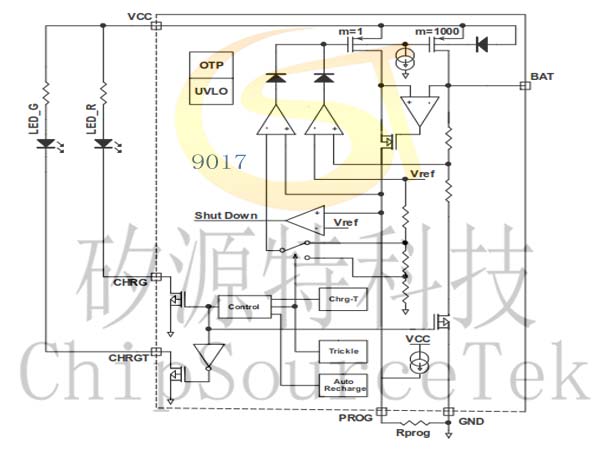 9017R. Monitor the condition of the battery, if the battery voltage is lower than 2.9V, decide whether it needs to be pre-charged. The precharge current can be set in any range from 7.5mA to 120mA via an external resistor. The pre-charged state keeps the battery in good condition and extends battery life. Once the battery voltage reaches 2.9V, the 9017R.will automatically convert to a constant current (CC) charge cycle. The internal current is set to more than 6 times the current at pre-charge. The constant current cycle function will minimize the time required to charge when the battery is close to full saturation, about 4.15V, 9017R. Will automatically convert to a constant voltage (CV) charge cycle. During the constant voltage charging cycle, the charging current will be reduced to gradually saturate the battery without the risk of supersaturation, which is necessary because lithium batteries cannot supersaturate 50mV, otherwise there is a risk of explosion.
