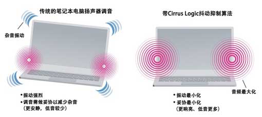 图 5:Cirrus Logic 算法可减少超薄笔记本电脑的杂音并最大限度地减少振动,同时确保响亮、优质的音频。