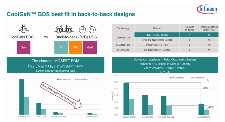 在近的Infineon 2025 Wide-Bandgap开发人员论坛上,Coolgan HV BDS的校长,产品定义和概念工程师Kennith Leong博士详细描述了Infineon的GAN BDS Switch。 HV BDS开关的额定值为650 V和850 V,并基于Infineon的栅极注入晶体管(GIT)GAN技术。合并后的中央排水区连接了这些HV BDS设备中的两个大门和来源。 Infineon还计划释放MV BDS开关,该开关的额定功能为40 V - 120 V,用于静态电池断开连接的应用,这些应用程序采用了Schottky Gate Gan Hemt Technology,以两条插入,单门和常见的源设计。