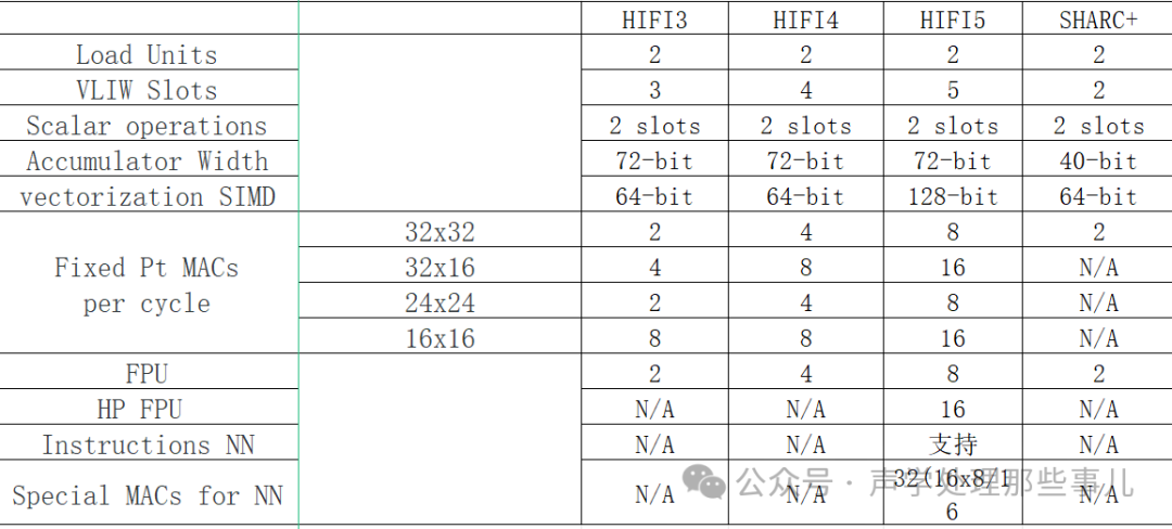 HIFI3/Qcom Hexagon DSP 是定点DSP,定点化处理要比浮点效率高,故在写算法时候需要根据相关指令集进行算法定点化处理,这点给算法开发带来了难度HIFi4/5/SHARC 是支持浮点,这是算法工程师首选