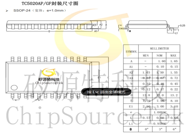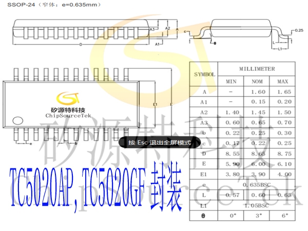 采用 SSOP-24 封装形式(宽体:e=1.0mm;窄体:e=0.635mm)