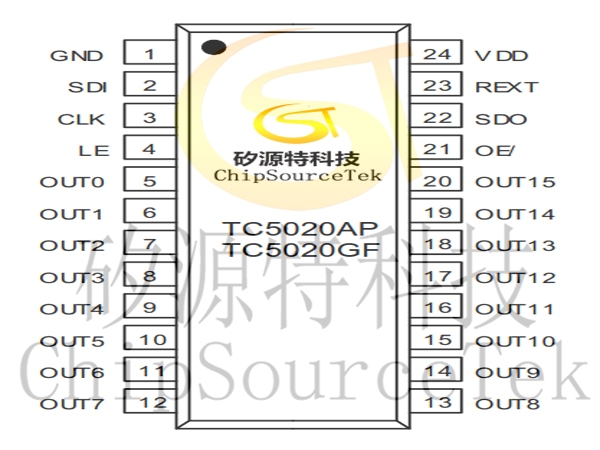 TC5020AP,TC5020GF保证输出级可耐压 11 伏特,因此可以将每个输出端串接多个 LED。此外,TC5020AP,TC5020GF亦提供 25MHz 的高时钟频率输入以满足系统对大量数据传输上的需求。