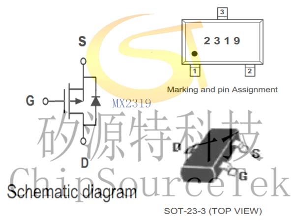 MX2319是VDS>=-18V,ID=-7A,RDS(ON)(Typ.)=17mΩ@VGS=-4.5V,RDS(ON)(Typ.)= 22mΩ@VGS=-2.5V的P沟道MOSFET.