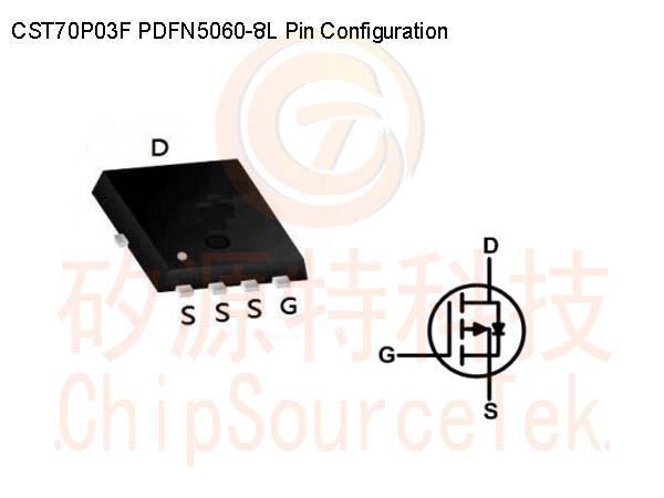 CST70P03F PDFN5060-8L Pin Configuration/引脚配置: